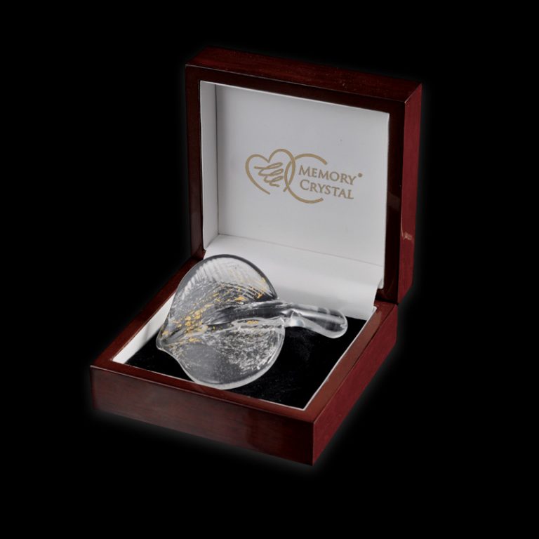 The ashes of the deceased are directly embedded into a glass leaf made of high-quality crystal along with 24-karat gold.