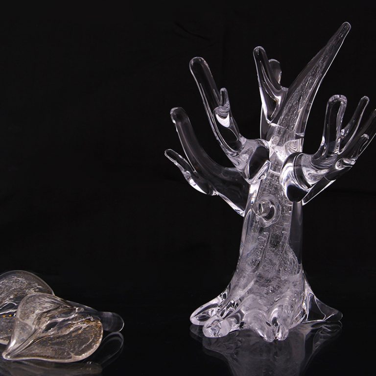 The ashes of the deceased are directly embedded into the trunk of a tree made of high-quality crystal. Only ashes.
